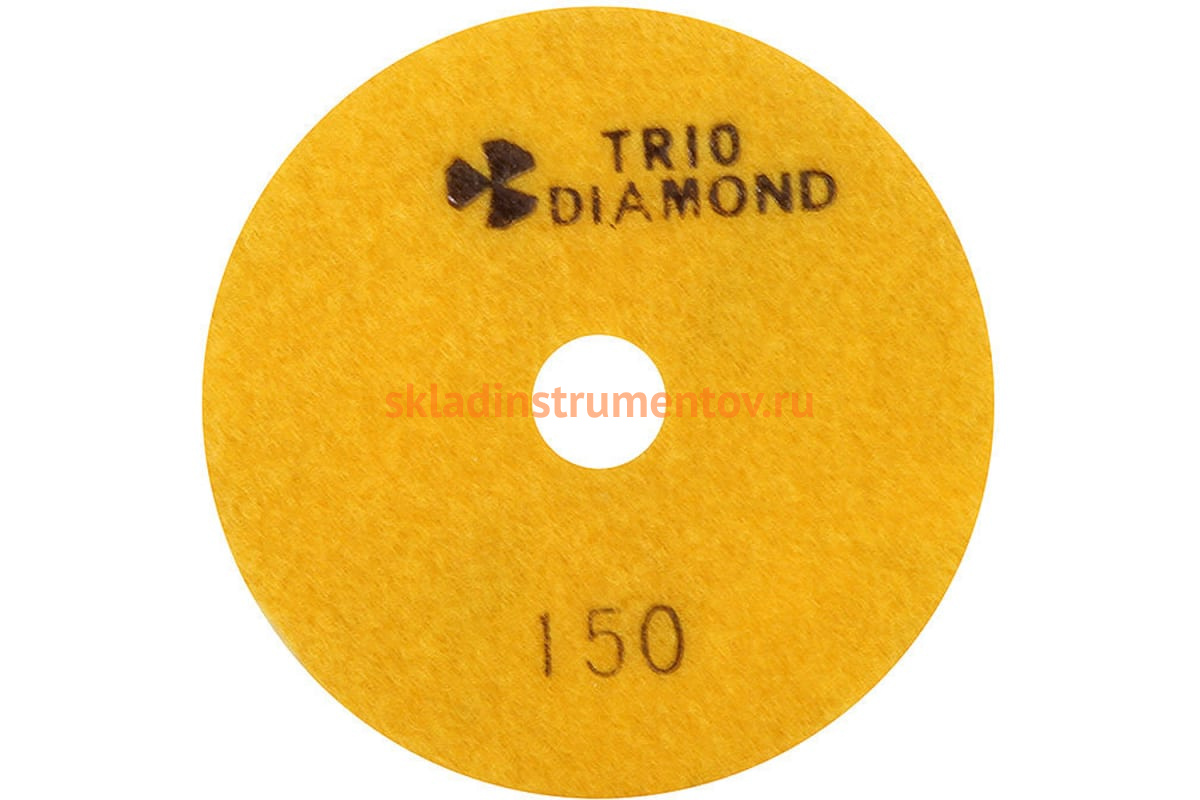 Круг алмазный гибкий шлифовальный Черепашка 100 № 150 Trio-Diamond 340150 предназначен для ручных шлифовальных машин. Применяется для обработки бетонных конструкций, камня, изделий из мрамора и гранита. Круг изготовлен на гибкой основе, имеет алмазное напыление и крепится при помощи липучки.