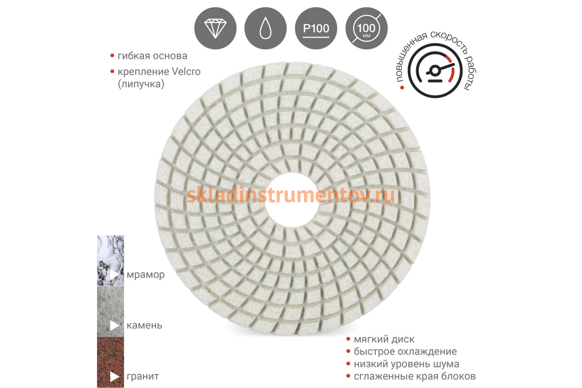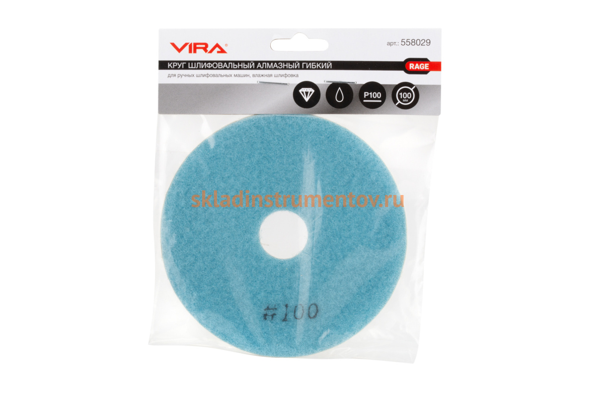 Круг шлифовальный алмазный гибкий VIRA RAGE 558029 предназначен для ручных шлифовальных машин. Применяется для обработки бетонных конструкций, камня, изделий из мрамора и гранита. Круг изготовлен на гибкой основе, имеет алмазное напыление и крепится при помощи липучки.