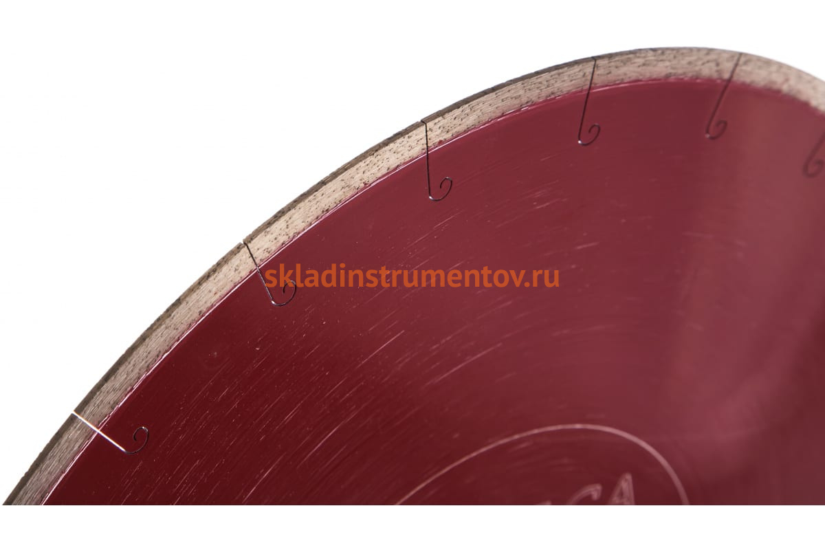 Диск алмазный сплошной HARD CERAMICS Solga Diamant 20010350 предназначен для работы на электрических плиткорезах и камнерезных станках. Применяется для резки твёрдой керамики, керамогранита, гранита, искусственного и натурального камня. Сплошная форма сегмента обеспечивает точный и гладкий рез без сколов. Диск оснащен компенсаторами (теплосъёмниками), которые обеспечивают отвод излишнего тепла и напряжения с корпуса диска, что позволяет избежать деформации при продолжительной работе с твёрдыми материалами. Обязательна подача воды в место реза.