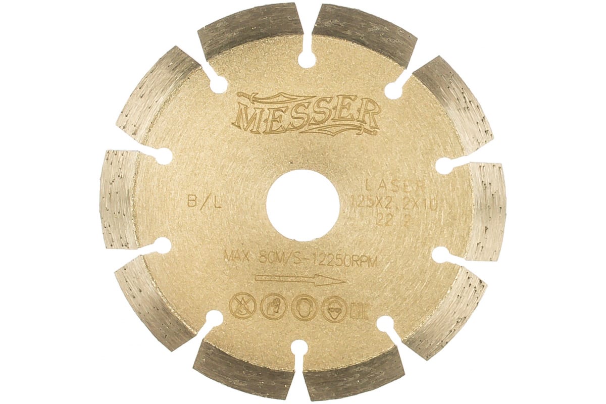 Алмазный диск B/L 125D-2.2T-10W-10S-22.2 MESSER 01-13-125 применяется для резки бетона, средне армированного бетона, кирпича, пеноблоков и.т.д. Обладает высокой скоростью резки.