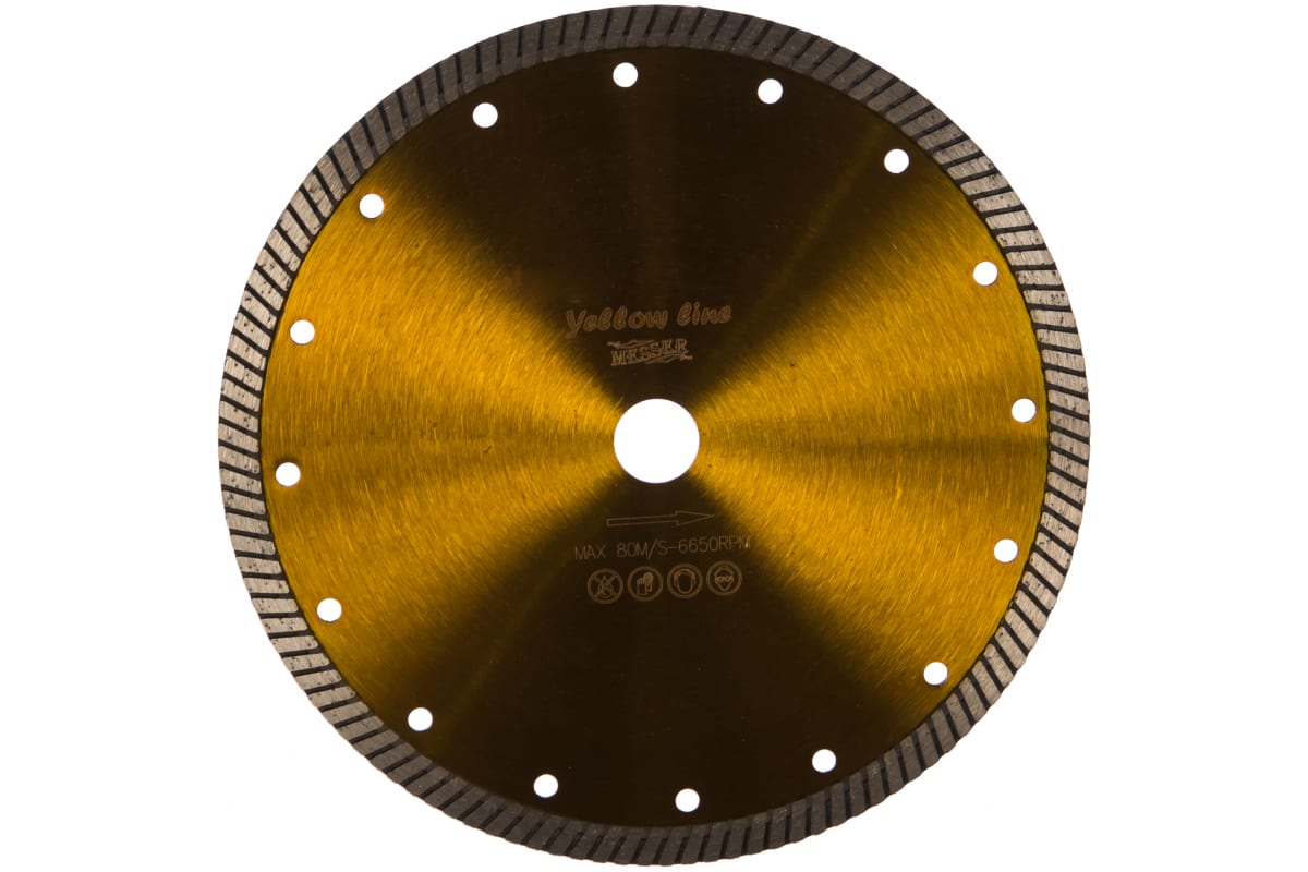 Алмазный диск турбо YL 230D-2.5T-10W-22.2 MESSER 01-36-230 является сменным элементом для резчиков. Применяется для резки бетона. Работа может осуществляться как с подачей воды, так и без неё. Высота сегмента — 10 мм.