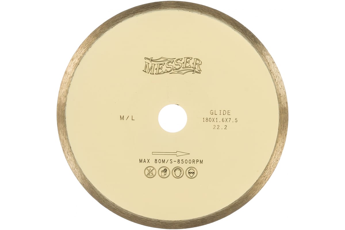 Диск алмазный сплошная кромка M/L 180D-1.6T-7.5W-22.2 MESSER 01-25-180 является сменным элементом для угловых шлифовальных машин и резчиков. Применяется для резки мрамора. Обладает высокой скоростью резки. Высота сегмента — 7.5 мм.