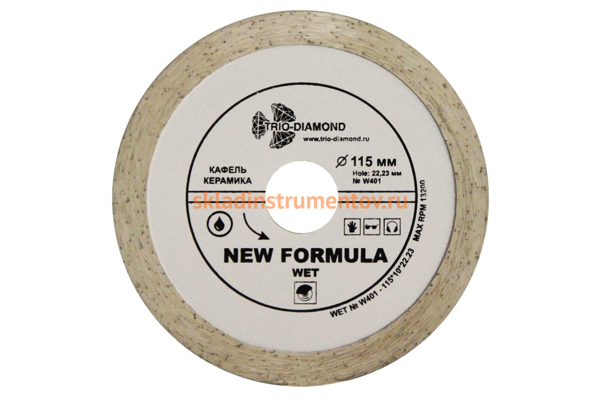 Диск алмазный отрезной Сплошной New Formula (115х22.23 мм) TRIO-DIAMOND W401