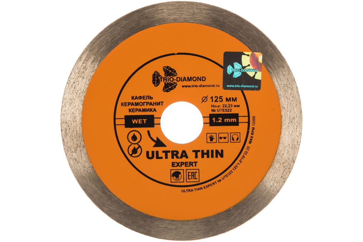Диск алмазный отрезной Сплошной Ультратонкий Ultra Thin hot press (125х22.23 мм) TRIO-DIAMOND UTE522