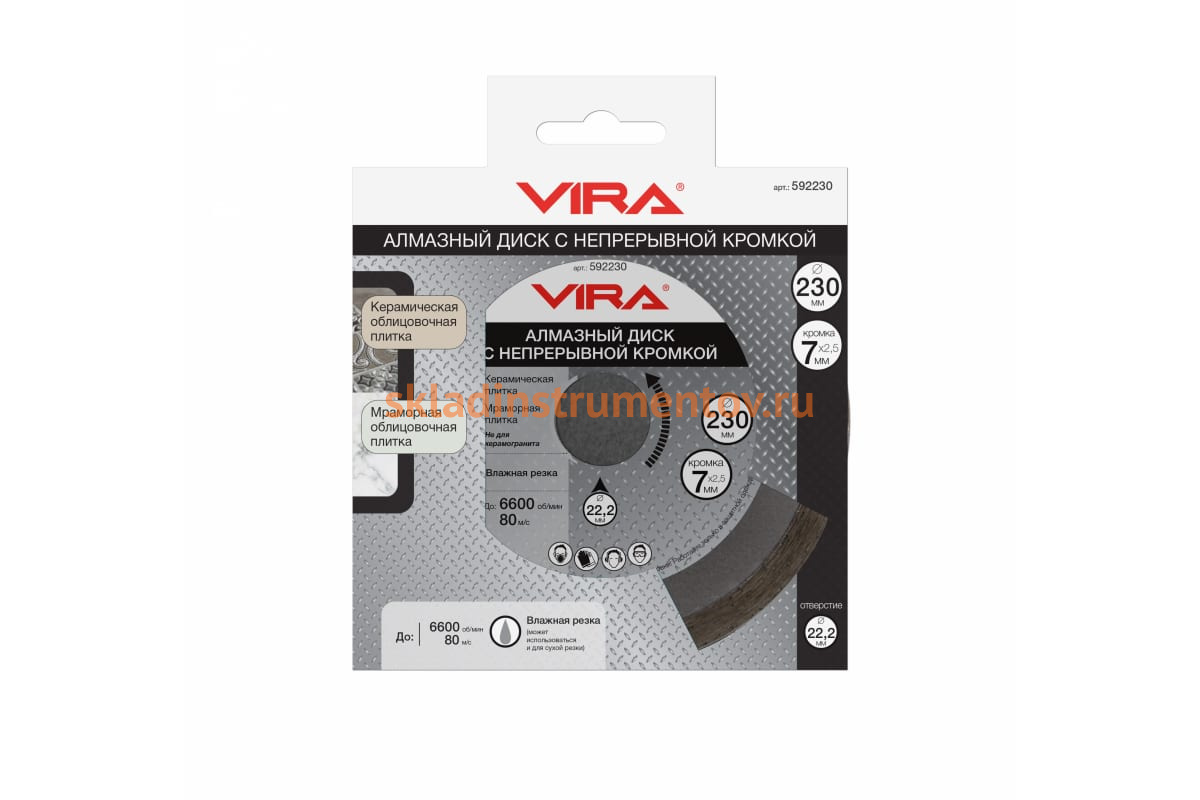 —Диск алмазный сплошная кромка (230х22.2 мм) Vira 592230—