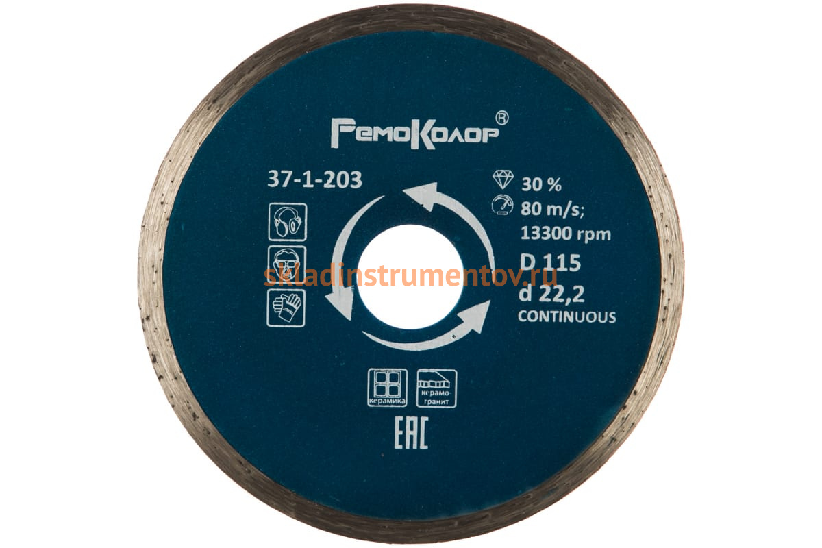 Диск отрезной алмазный сплошной для влажной резки (115х22.2 мм) РемоКолор 37-1-203