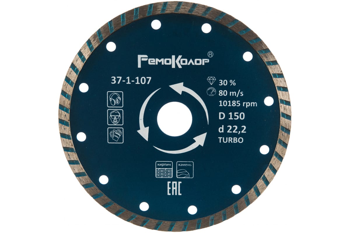 Диск отрезной алмазный универсальный Турбо (150х22.2 мм) РемоКолор 37-1-107