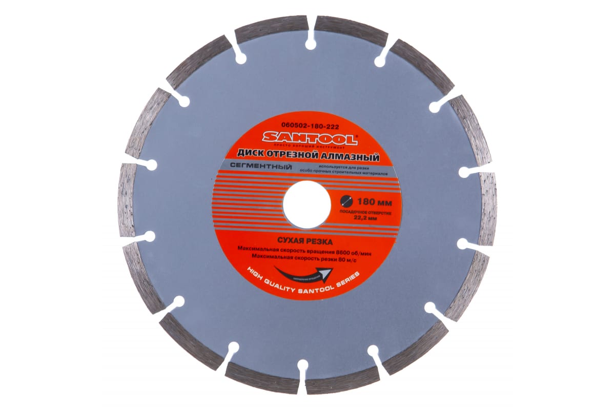Диск отрезной алмазный 180x22,2 мм сухая резка SANTOOL 060502-180-222