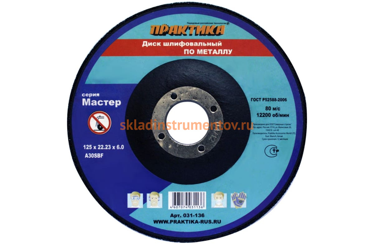 —Диск шлифовальный по металлу (125х22х6 мм) ПРАКТИКА 031-136—