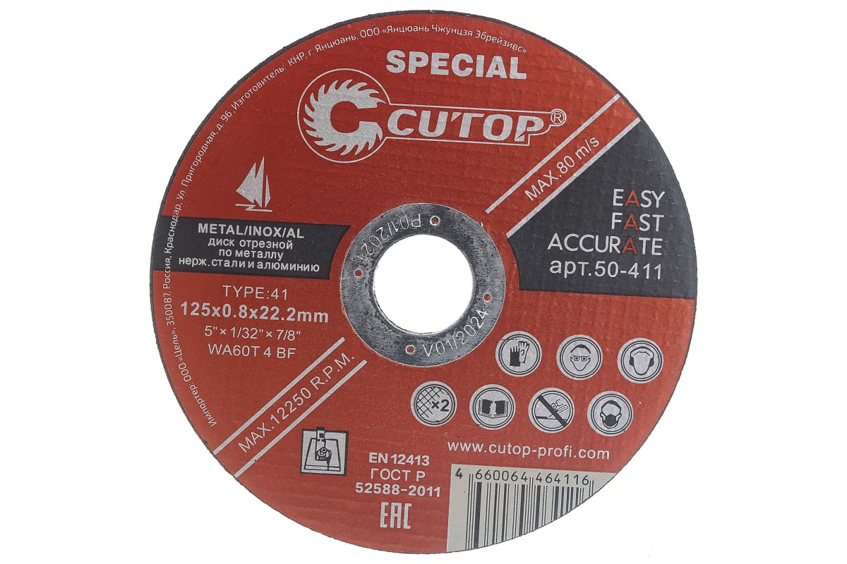 Диск специальный CUTOP 50-411 предназначен для профессионального использования с углошлифовальной машиной. Подходит для высокоточной резки металлочерепицы, листового метала и профильной трубы.