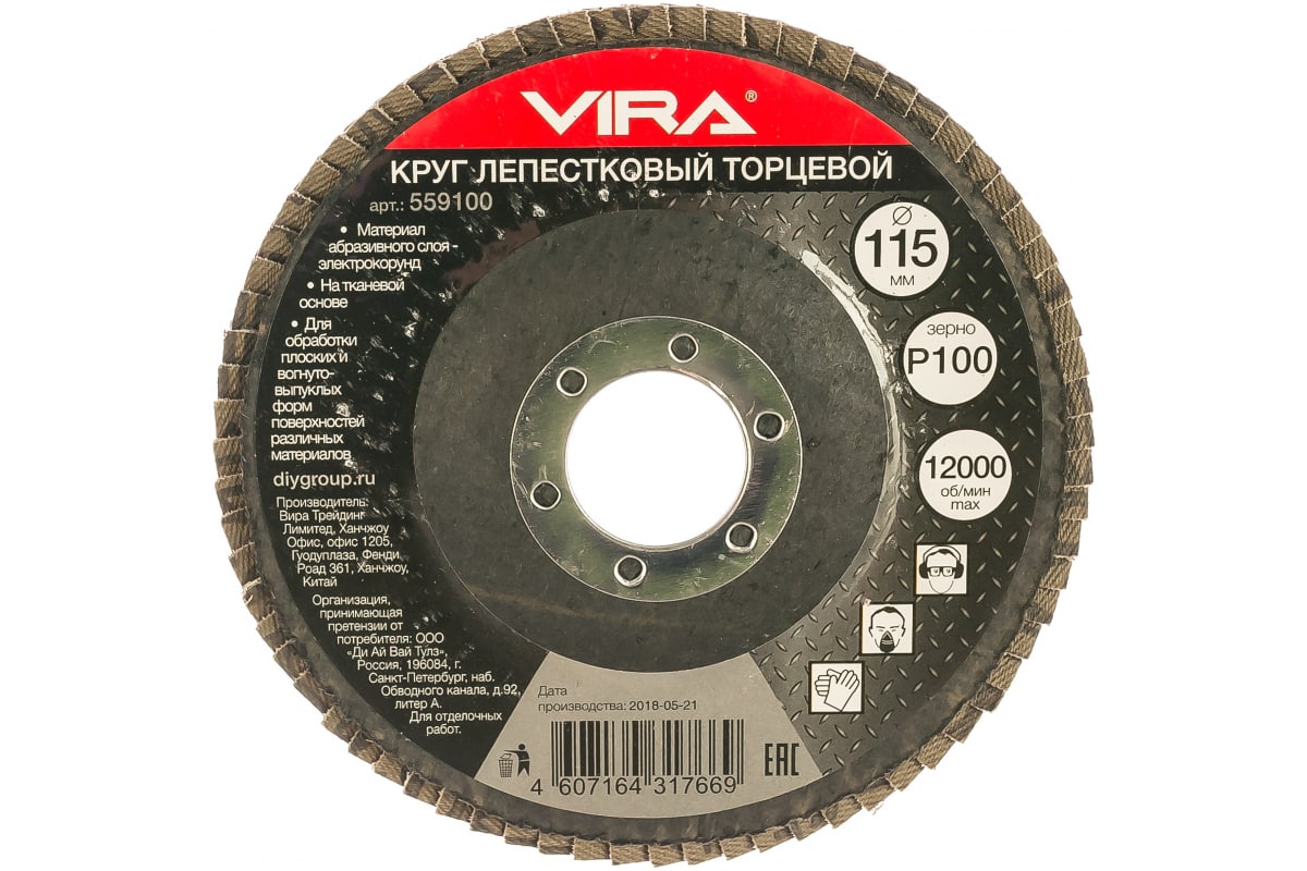 —Круг лепестковый торцевой (115х22.2 мм; P100) Vira 559100—