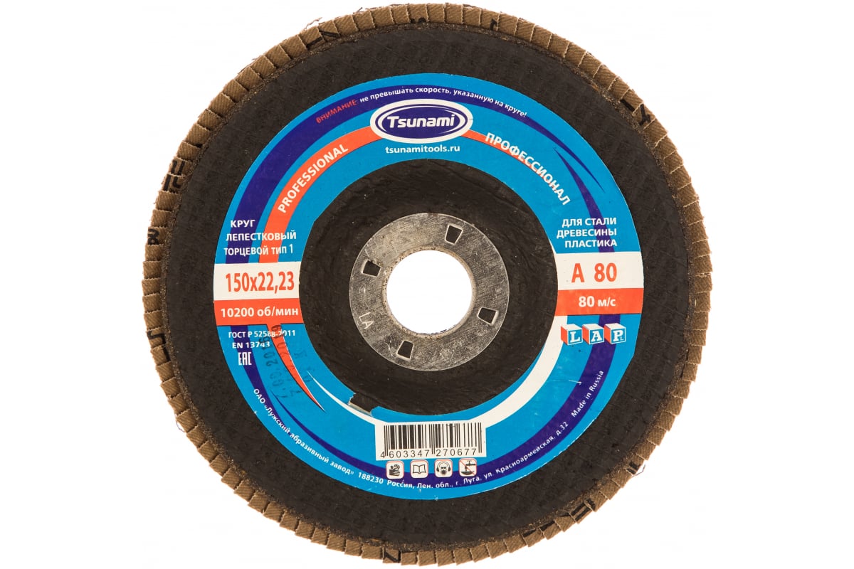 Круг лепестковый универсальный Tsunami КЛТ1 D96100000P15080 может применяться для обработки любого материала: подходит как для металла, так и для дерева или пластика. Имеет выпуклую форму и качественно шлифует поверхность.