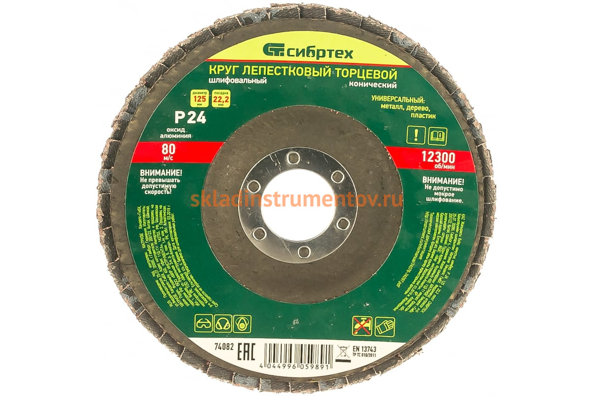 —Круг лепестковый торцевой, конический (125x22.2 мм; P24) СИБРТЕХ 74082