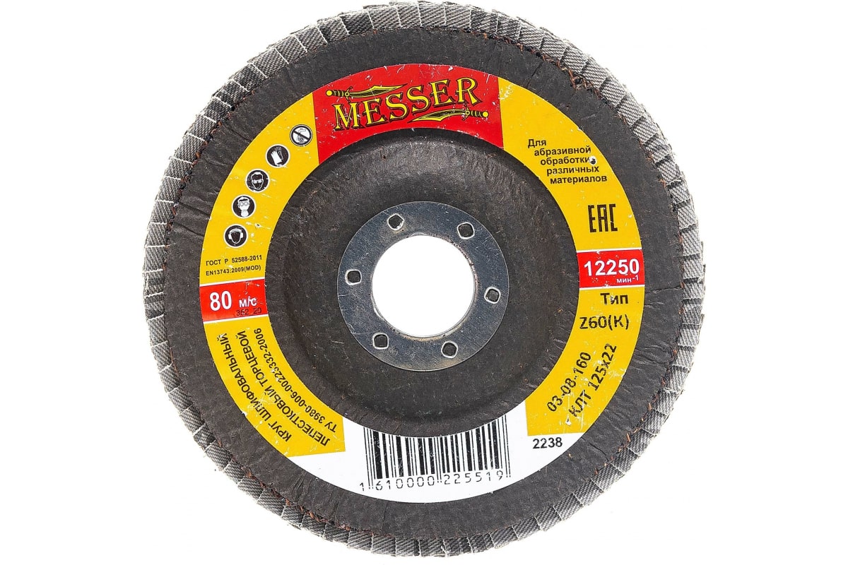Круг шлифовальный лепестковый торцевой конусный MESSER 03-08-160 предназначен для угловых шлифовальных машин. Применяется для обработки сварных швов, снятия облоя и заусенцев.