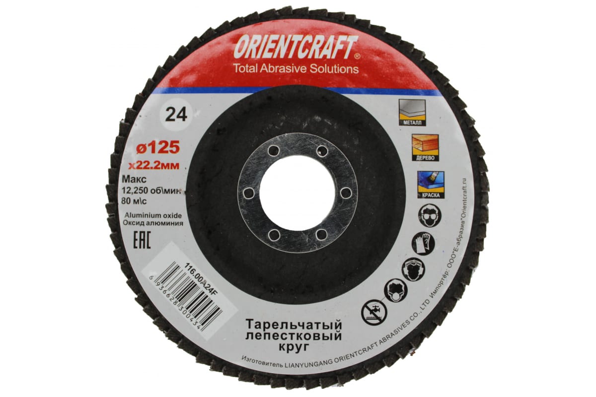 —Круг лепестковый Orientcraft торцевой КЛТ-1 125x22 мм, P24, для металла, древесины 116.00A 24F—
