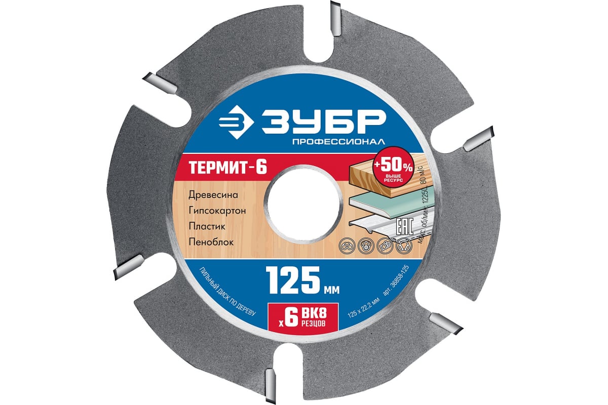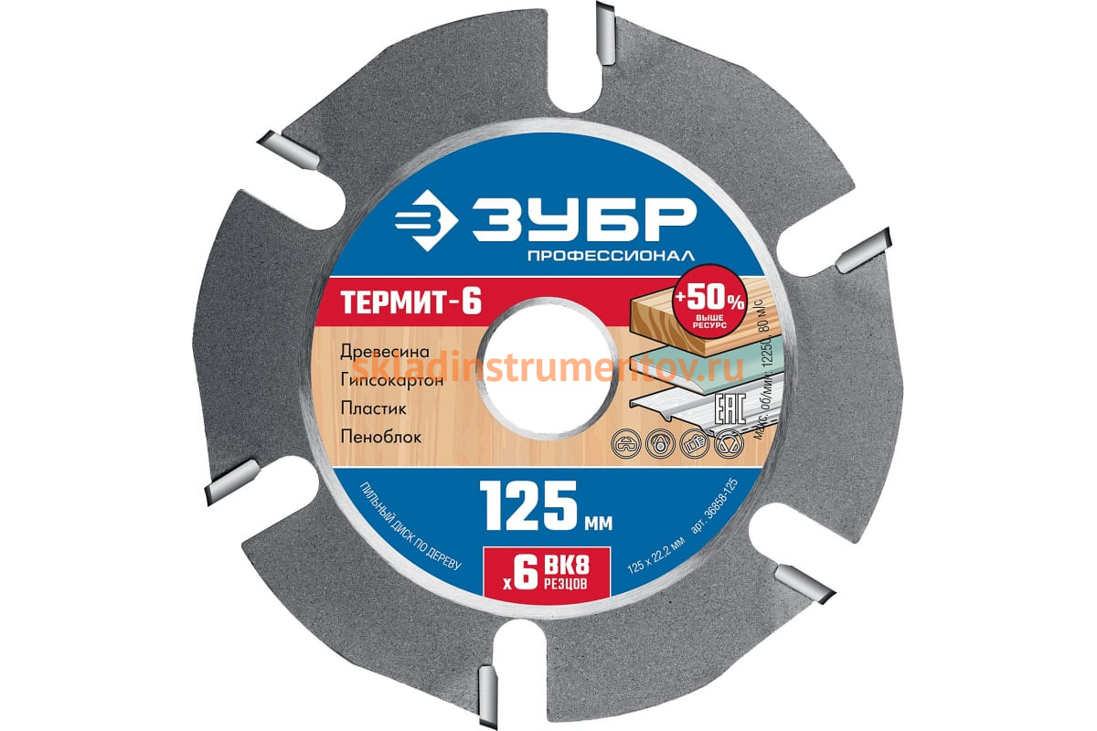 —Диск пильный Термит-6 по дереву ЗУБР 125х22.2 мм для УШМ 36858-125—