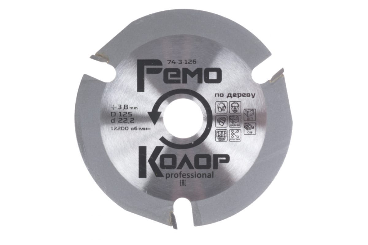 Диск пильный РемоКолор 74-3-126 применяется для работы совместно с высокооборотистыми УШМ. Подходит для распила дерева, гипсокартона, ламината, ДВП, ДСП и т.д.