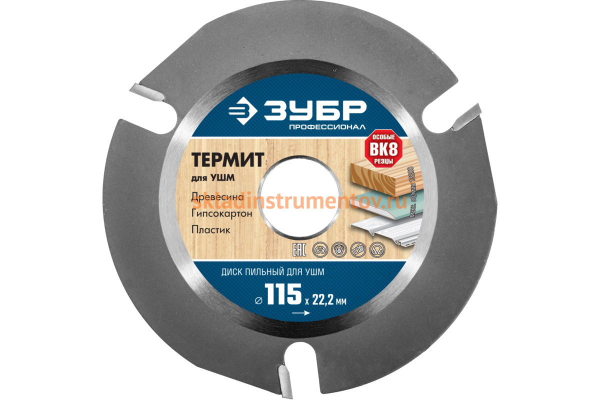 —Диск пильный по дереву Термит-3 (115х22.2 мм; 3 резца) для УШМ Зубр 36857-115_z01—