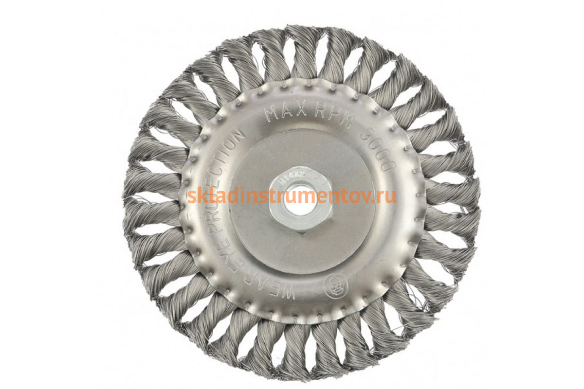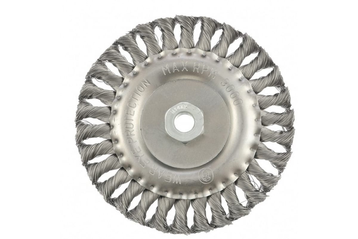 Щетка плоская для УШМ (150 мм; М14; 0.35 мм) MATRIX 74635 является сменным элементом для угловых шлифмашин. Применяется для шлифовки, полирования, зачистки от лака, краски и коррозии различных поверхностей и изделий. Рабочая часть состоит из скрученной в пучки стальной проволоки диаметром 0.35 мм. Специальная форма щетки в виде диска и упругие плетеные пучки позволяют работать в труднодоступных местах.