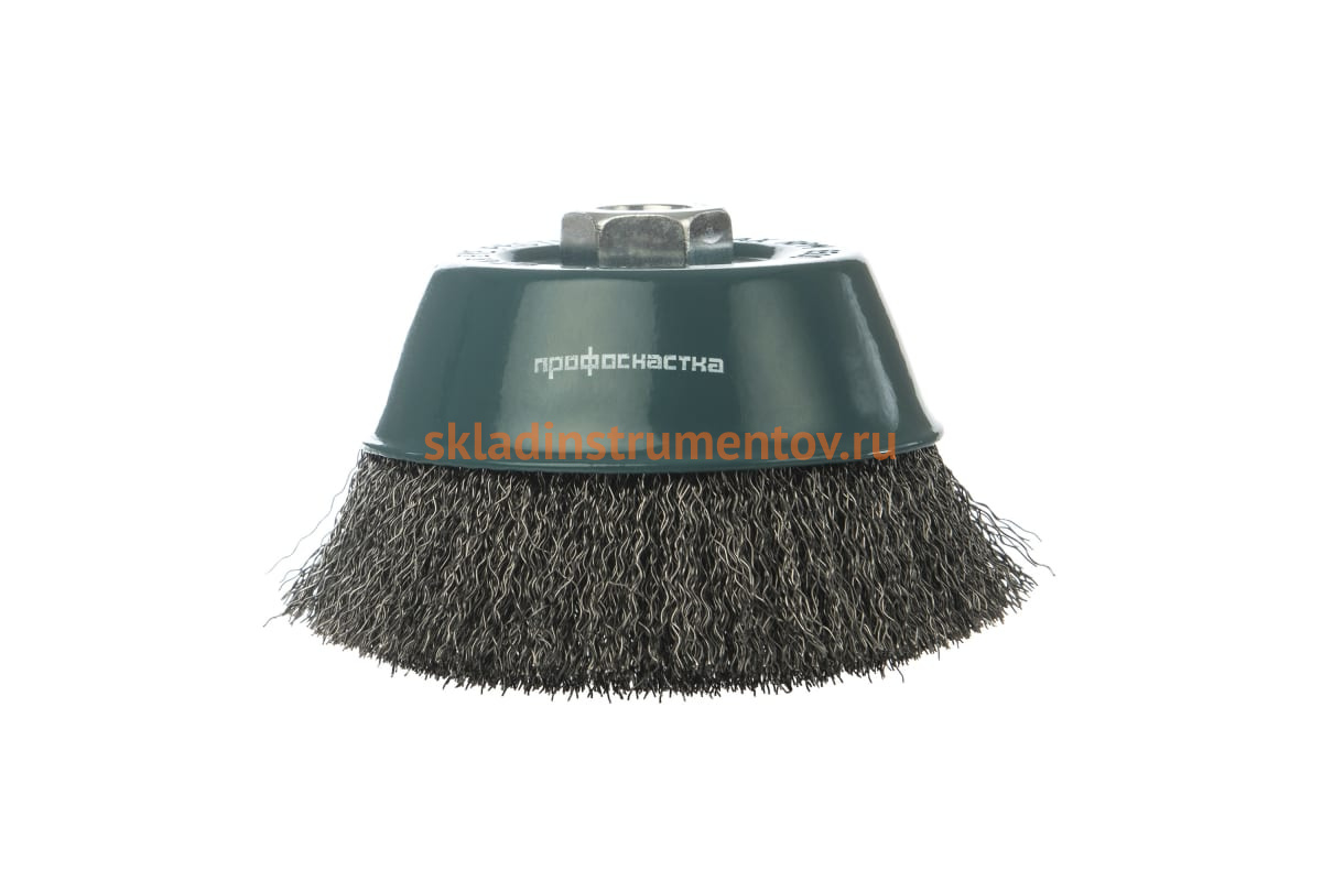 Щетка чашечная Мастер 005 Профоснастка 20101005 предназначена для угловой шлифовальной машины. Применяется для легких и средних зачистных работ. Щетка имеет стальную гофрированную проволоку. Диаметр проволоки – 0.3 мм. Максимальное количество оборотов – 6500 об/мин.