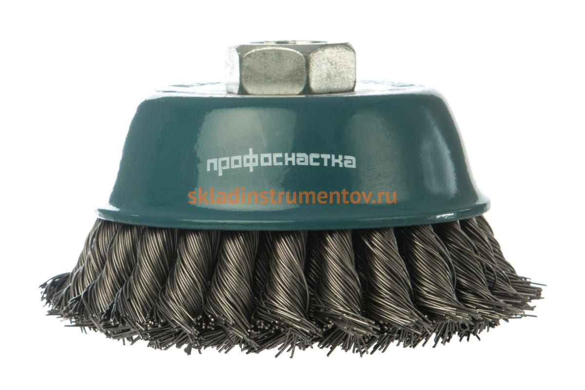 Щетка чашечная Мастер 022 Профоснастка 20102002 предназначена для угловой шлифовальной машины. Применяется для жестких и агрессивных зачистных работ на больших поверхностях. Щетка имеет стальную витую проволоку. Диаметр проволоки – 0.5 мм. Максимальное количество оборотов – 12500 об/мин.