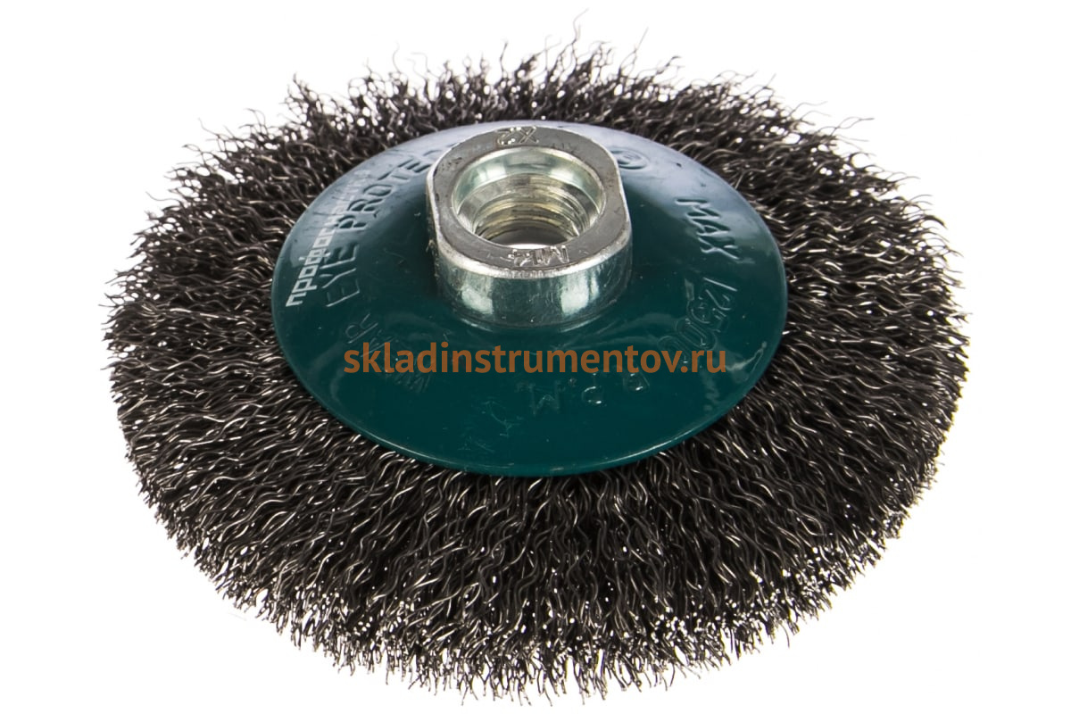 Щетка коническая Мастер 055 Профоснастка 20105001 предназначена для угловых шлифовальных машин. Применяется для жестких зачистных работ. Щетка имеет стальную гофрированную проволоку. Диаметр проволоки – 0.3 мм. Максимальное количество оборотов – 12500 об/мин. Длина проволоки – 20 мм.