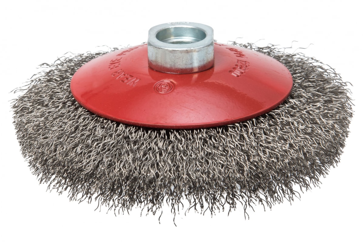 Щетка коническая Эксперт 537 Профоснастка 20804003 предназначена для угловых шлифовальных машин. Применяется для очистных работ. Щетка имеет витую нержавеющую проволоку. Диаметр проволоки – 0.3 мм. Длина проволоки – 28 мм. Максимальное количество оборотов – 12500 об/мин.