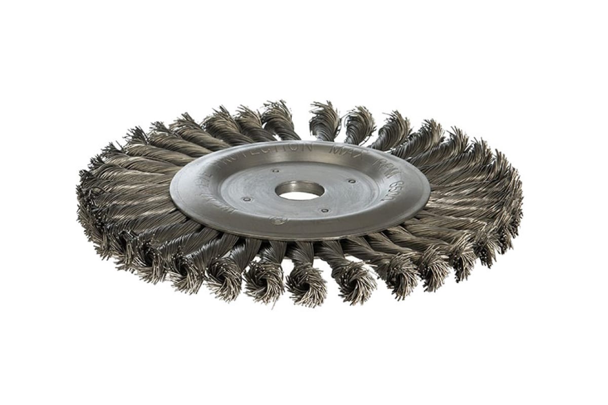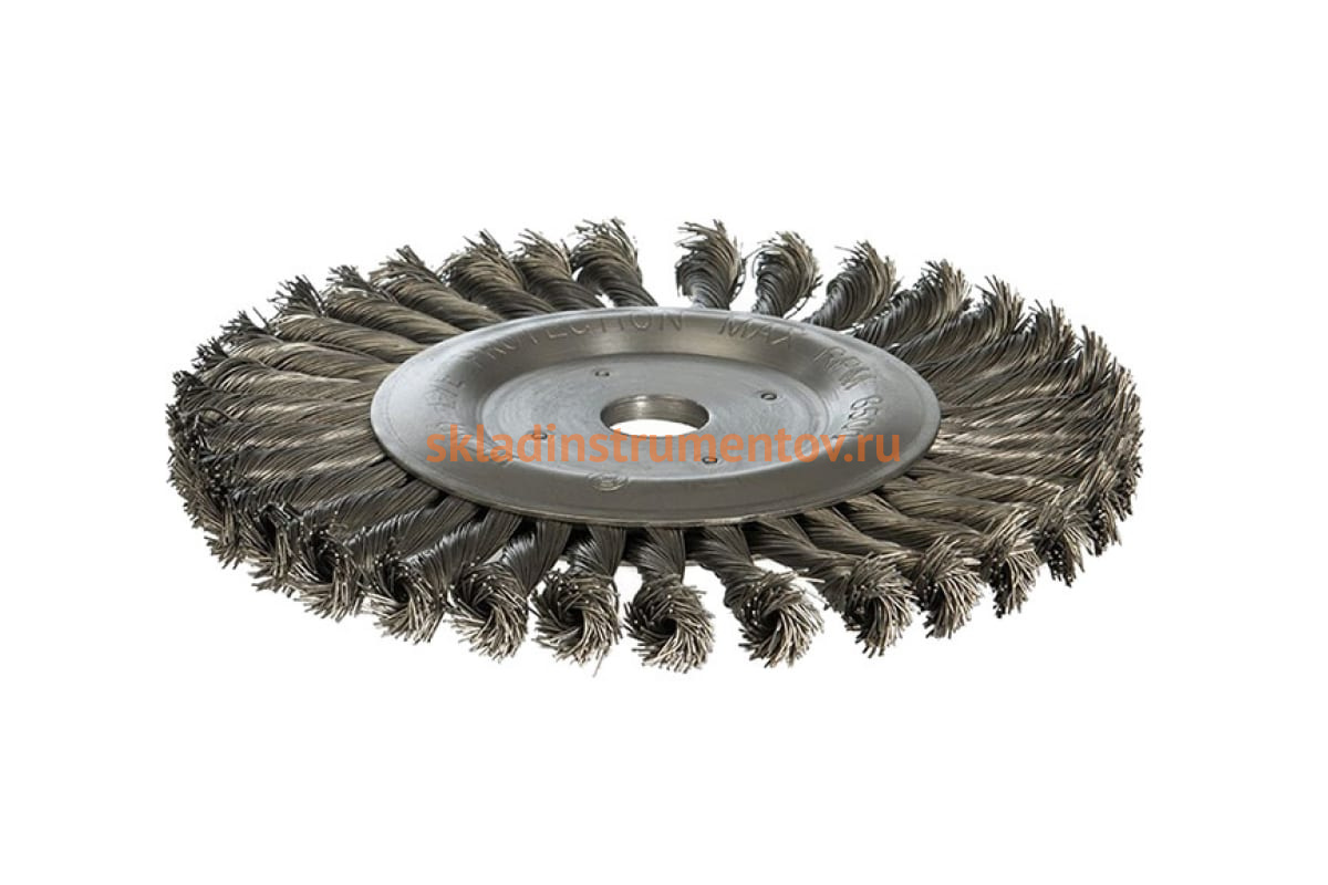 Щетка дисковая Профоснастка 20806027 является сменным элементом для угловых шлифмашин. Щетка применяется для зачистки от окалины и коррозии различных поверхностей и сварных швов. Рабочая часть состоит из скрученной в пучки стальной проволоки. Специальная форма щетки в виде диска и упругие плетеные пучки позволяют работать в труднодоступных местах.