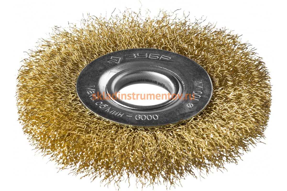 Щетка дисковая (100х22 мм; витая стальная латунированная проволока 0.3 мм) ЗУБР 35187-100_z01