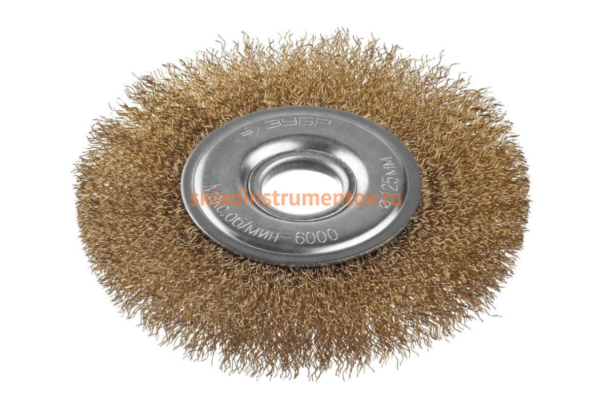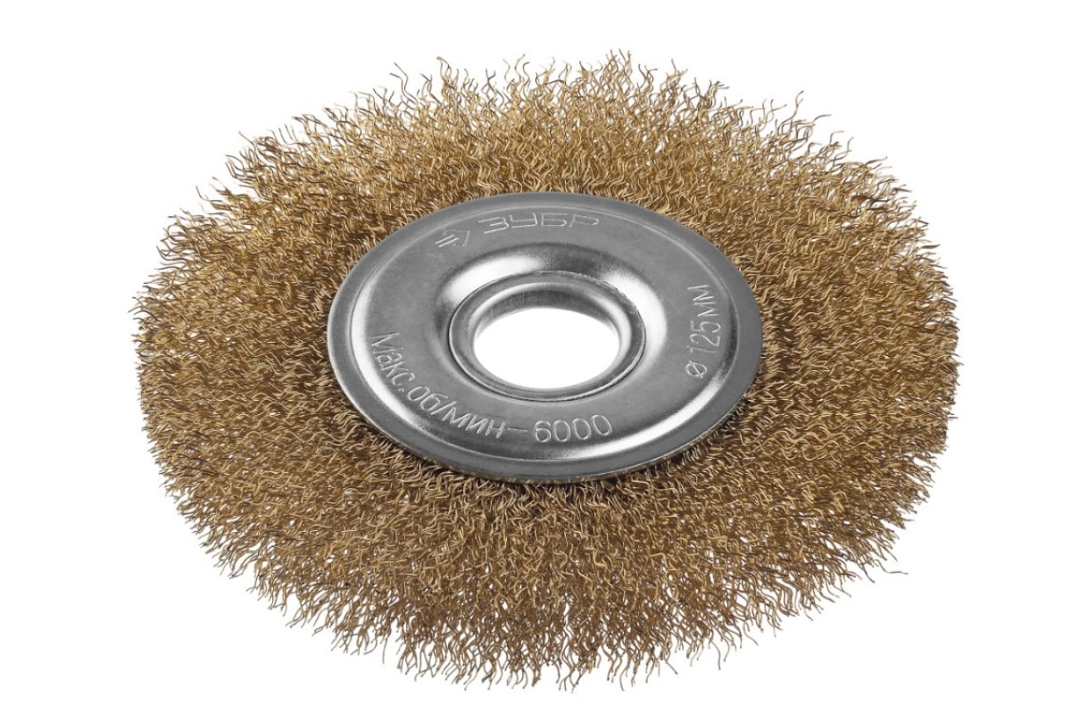 Щетка дисковая для УШМ, проволока 0.3 мм, 175х22 мм Зубр 35187-175_z01 используется с дрелью для зачистки от ржавчины и окалины металлических поверхностей.