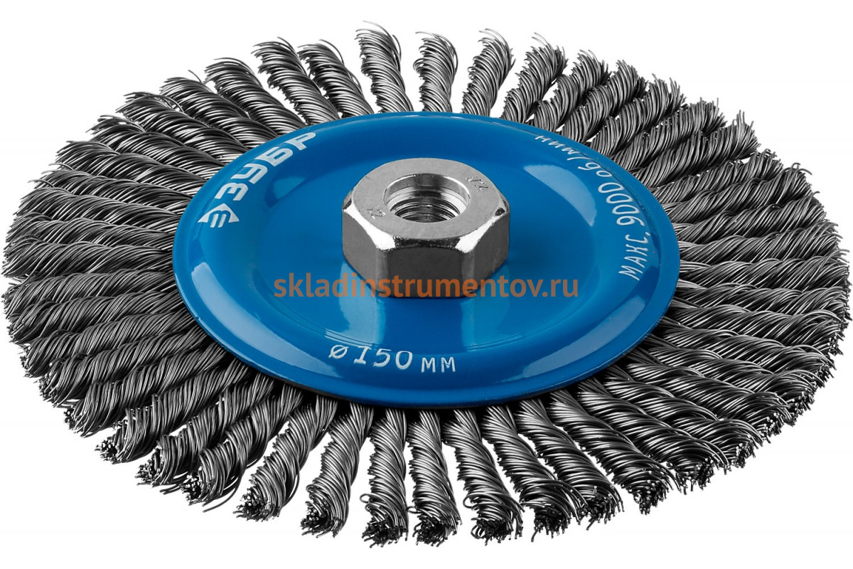 Щетка дисковая Зубр 35192-150_z02 является сменным элементом для угловых шлифмашин. Используется для зачистки поверхностей от старых лакокрасочных покрытий, ржавчины, окалины. Рабочая часть состоит из скрученной в пучки стальной проволоки диаметром 0.5 мм.