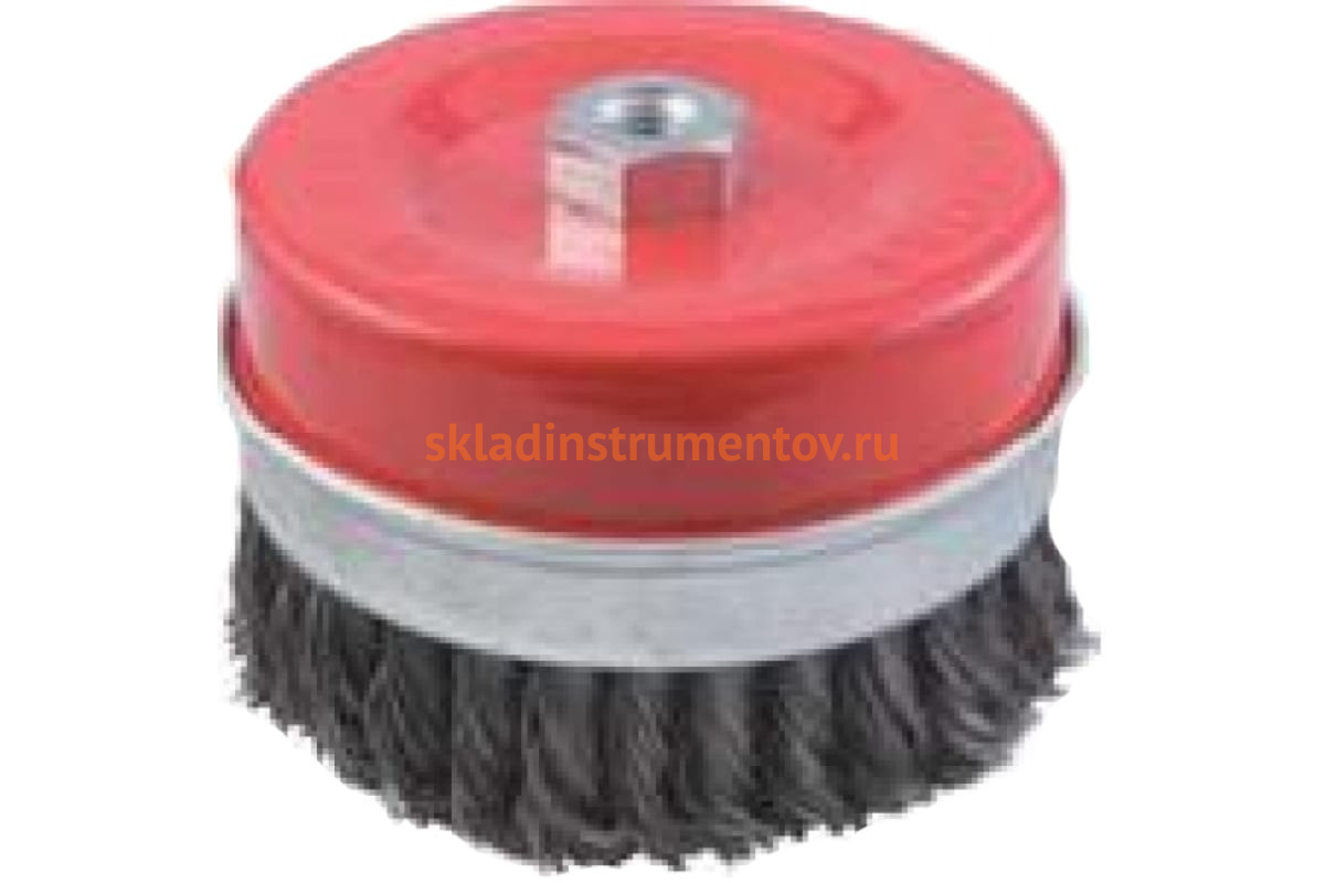 Чашечная щетка Контрфорс 106806 является сменным элементом для угловых шлифовальных машин. Щетка применяется для зачистки от лака, краски и ржавчины различных поверхностей и изделий. Рабочая часть состоит из скрученной в пучки стальной проволоки. Металлический бандаж позволяет осуществлять работу с сильным нажимом. Посадочная резьба — М14.