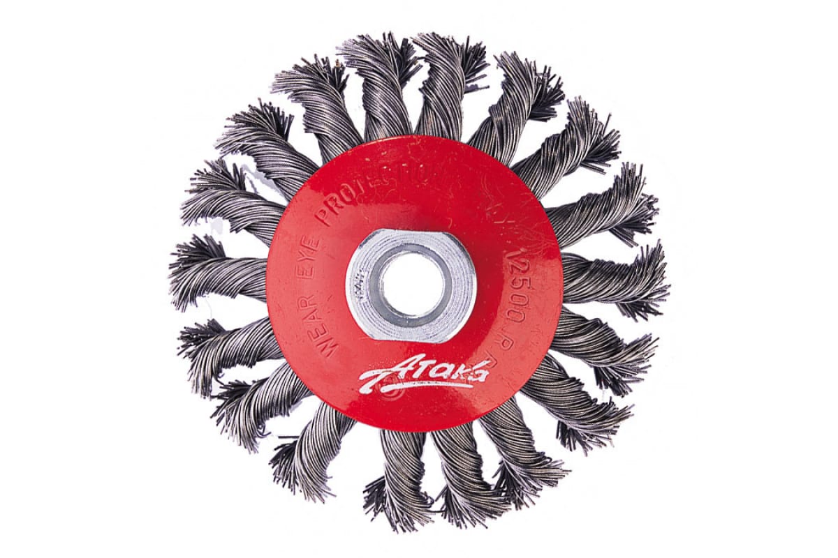 Щетка вогнутая витая 1210014135 АТАКА 22218 подходит для угловых шлифмашин. Необходима для трудоемких работ по очистке поверхностей из металла от краски и коррозии, а также обработки поверхности перед сваркой и зачистке швов после нее, при кузовных работах и очищении механизмов. Выполнена из нержавеющей стали. Оснащена жесткой стальной витой проволокой.