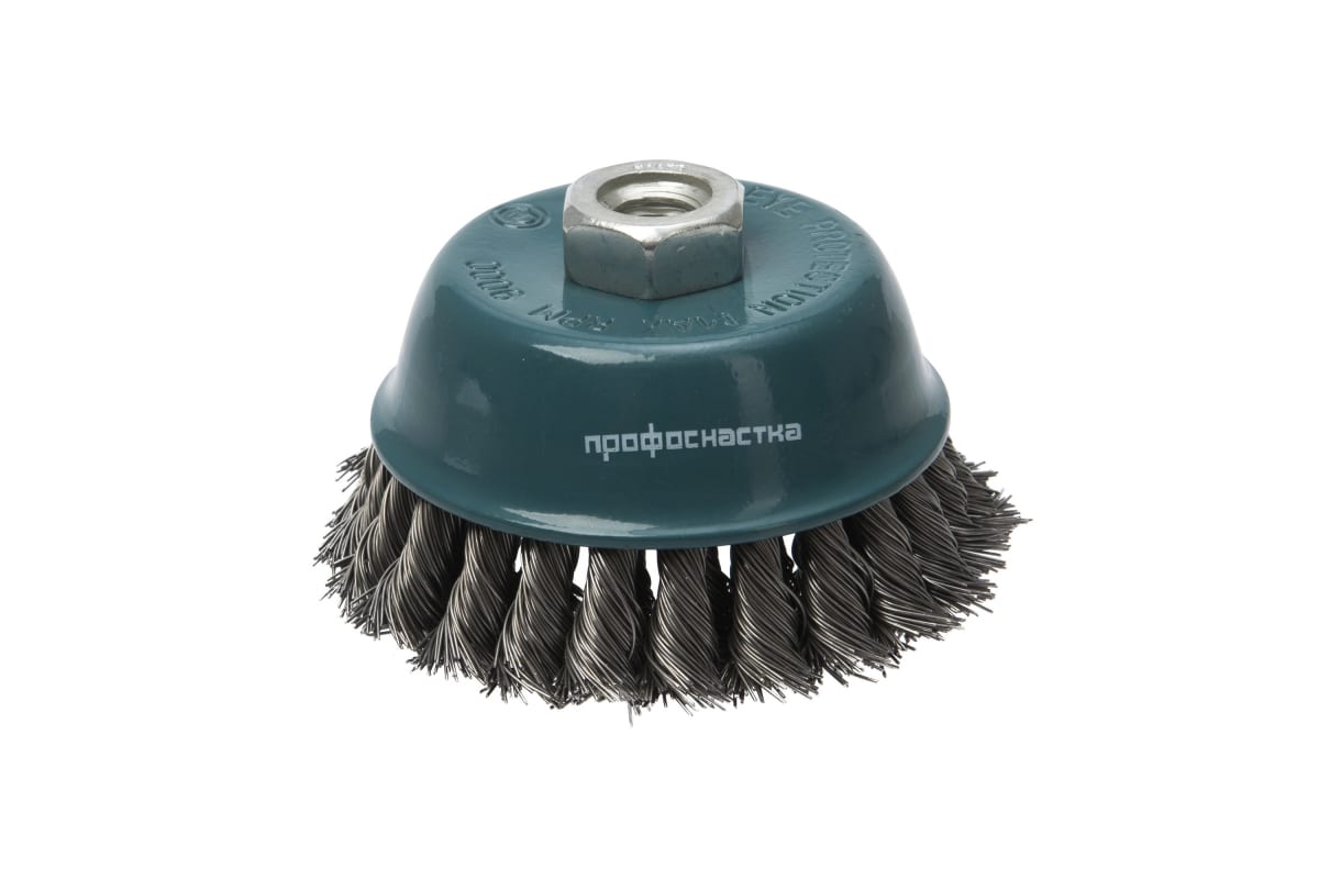 Щетка чашечная двухрядная Мастер 032 Профоснастка 20103002 предназначена для угловой шлифовальной машины. Применяется для особо жестких и агрессивных зачистных работ на больших поверхностях. Щетка имеет два ряда стальной витой проволоки. Диаметр проволоки – 0.5 мм. Максимальное количество оборотов – 6500 об/мин.