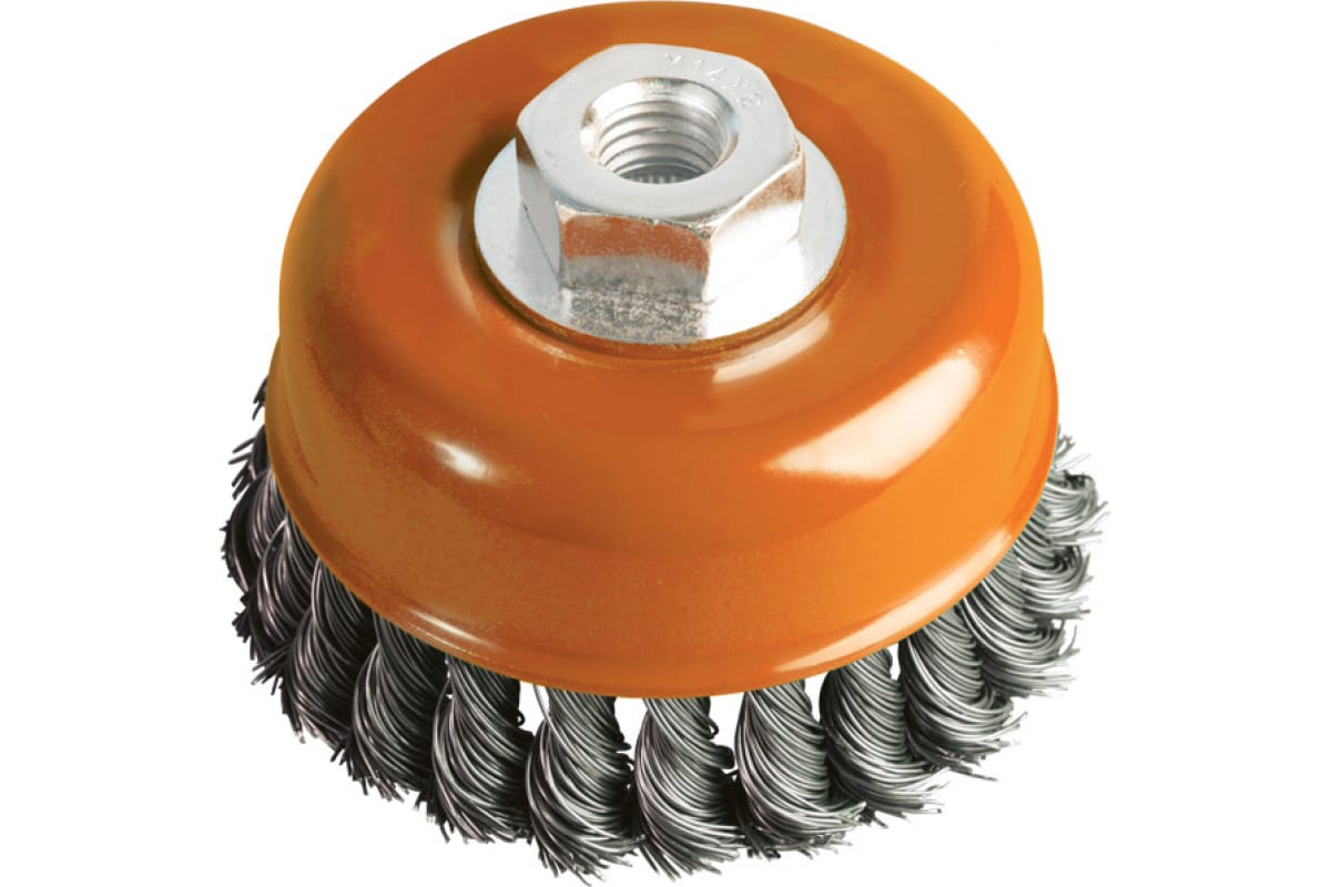 Щетка - крацовка для УШМ 100 мм Archimedes 91493 применяется для зачистных работ в труднодоступных местах старых покрытий, ржавчины, окалины, загрязнений, а также для зачистки сварных швов. Устанавливается на УШМ. Стальная жгутированная проволока сплетена в толстый пучок и обладает повышенным ресурсом.