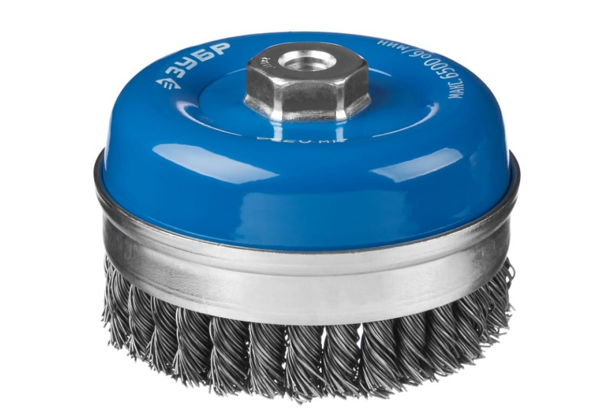 Щетка ЭКСПЕРТ чашечная усиленная для УШМ (120 мм, М14, жгутированная проволока 0.8 мм) Зубр 35271-120_z01 используется для удаления старого ЛКП, зачистки от ржавчины и окалины металлических поверхностей.