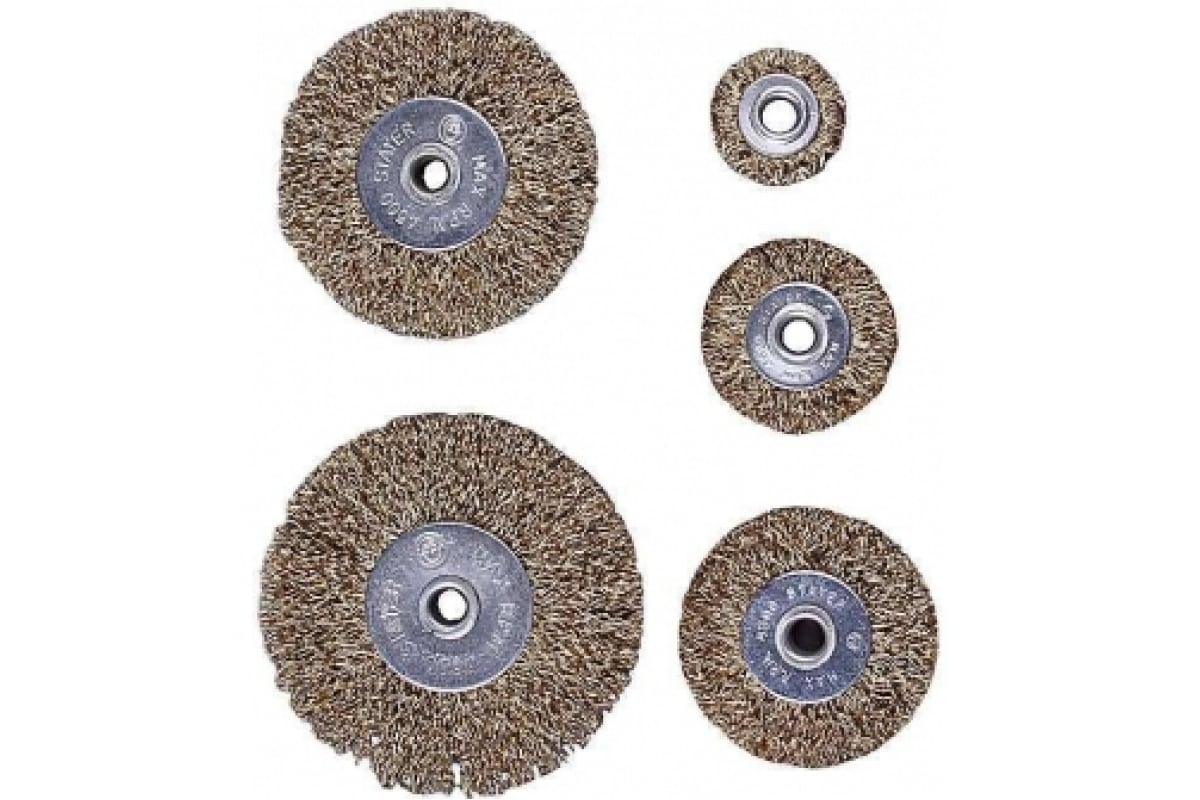 —Набор щеток дисковых для дрели, витая латунированная проволока 0,3 мм, 5 шт. Зубр Эксперт 3521-H5_z01—