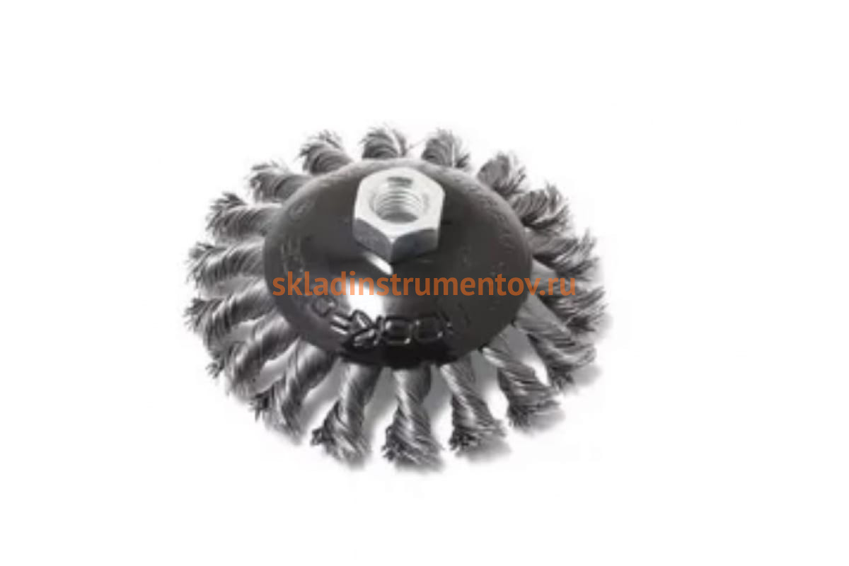—Кордщетка дисковая получаша (стальная витая проволока, 100 мм, в блистере) ROCKFORCE RF-BWD104—