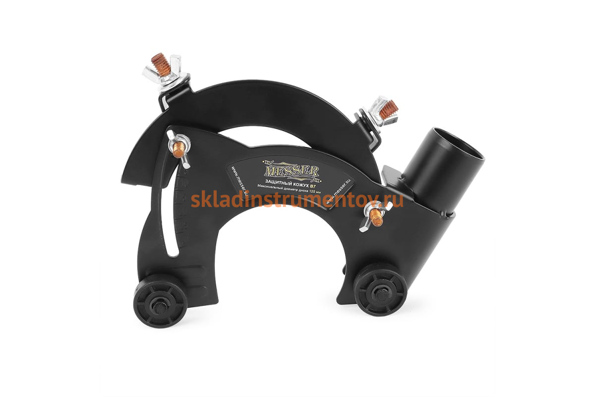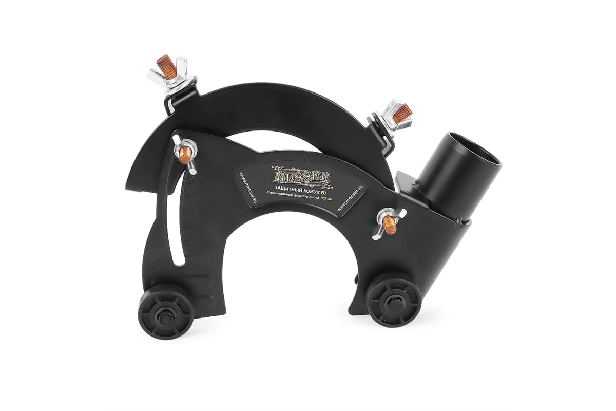 При использовании насадки на кожух MESSER тип В7, можно регулировать глубину реза, а также производить пылеотведение из зоны реза при подключении строительного пылесоса.