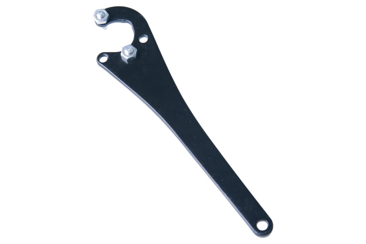 Универсальный ключ для УШМ Norma Archimedes 91401 используется для замены/установки отрезных, зачистных, алмазных дисков, проволочных щеток, полировальных насадок диаметром от 100 мм до 230 мм. Ключ можно зафиксировать в 3 положениях между штифтами - 31мм, 34мм, 35мм. Изготовлен из инструментальной стали HCS.