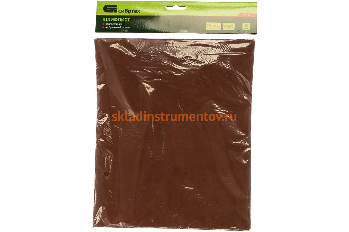 —Лист шлифовальный на бумажной основе (10 шт; 230х280 мм; P 400) СИБРТЕХ 756187—