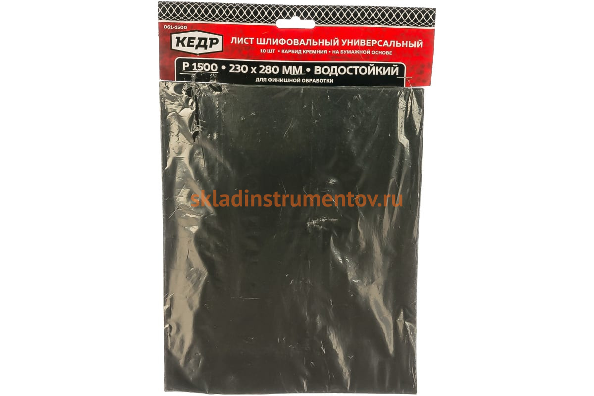 —Бумага шлифовальная водостойкая (10 шт/уп; 230х280 мм; P1500) КЕДР 54750—