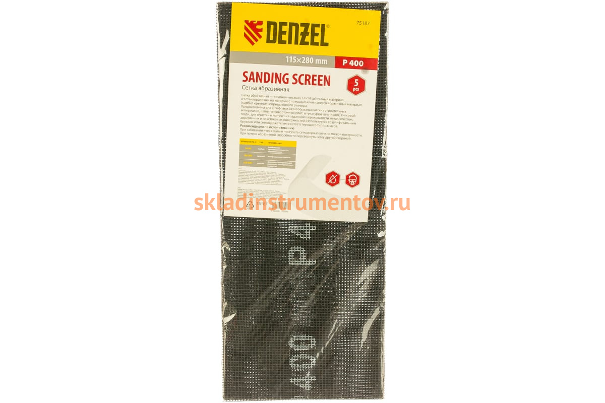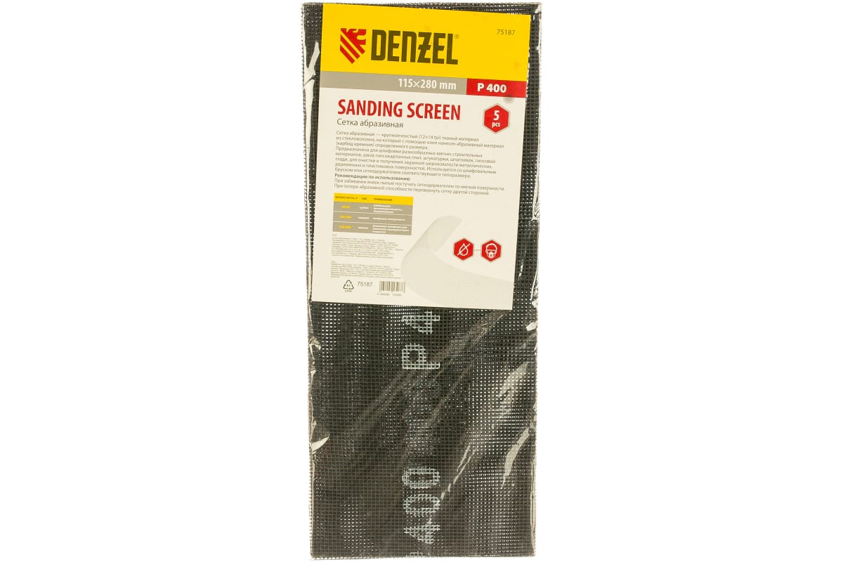 —Сетка абразивная (5 шт; 115х280 мм; P 400) DENZEL 75187