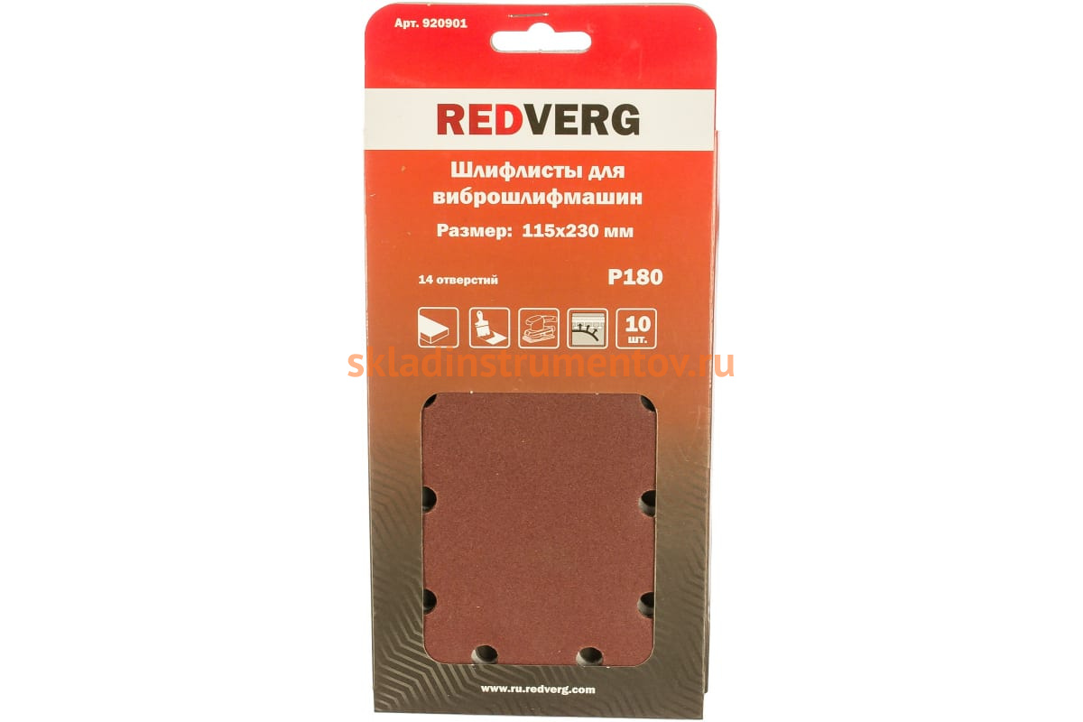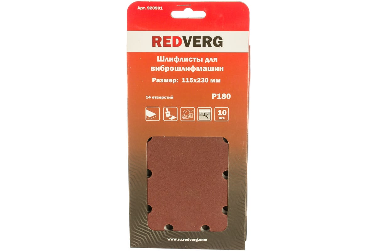 Лист шлифовальный (10 шт; 115х230 мм; Р180; 14 отверстий; Velcro) для виброшлифмашин REDVERG 6624225