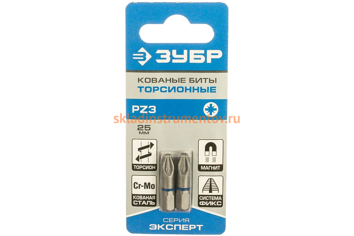 Биты "ЭКСПЕРТ" Зубр 26013-3-25-2 являются расходным инструментом для шуруповертов при монтаже/демонтаже крепежа со шлицем PZ3. Наличие торсионной зоны предохраняет наконечник от разрушения при предельных нагрузках. Рабочие грани прошли прецизионную обработку, что обеспечивает максимально точную посадку шлица в крепеже. Обточенная часть способствует удобной работе в труднодоступных местах. Биты изготовлены из кованой хромомолибденовой стали, что обеспечивает им продолжительный срок службы. Также стоит отметить, что шлиц намагничен, что делает рабочий процесс комфортнее. Длина бит составляет 25 мм, тип хвостовика - С 1/4".