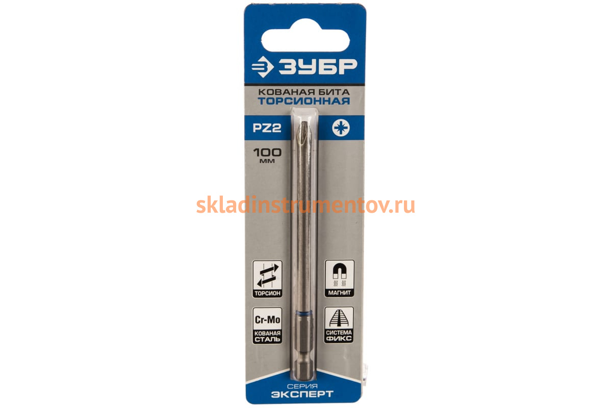 Бита "ЭКСПЕРТ" Зубр 26013-2-100-1 является расходным инструментом для шуруповертов при монтаже/демонтаже крепежа со шлицем PZ2. Наличие торсионной зоны предохраняет наконечник от разрушения при предельных нагрузках. Рабочие грани прошли прецизионную обработку, что обеспечивает максимально точную посадку шлица в крепеже. Обточенная часть способствует удобной работе в труднодоступных местах. Биты изготовлены из кованой хромомолибденовой стали, что обеспечивает им продолжительный срок службы. Также стоит отметить, что шлиц намагничен, что делает рабочий процесс комфортнее. Длина биты составляет 100 мм, тип хвостовика - Е 1/4".