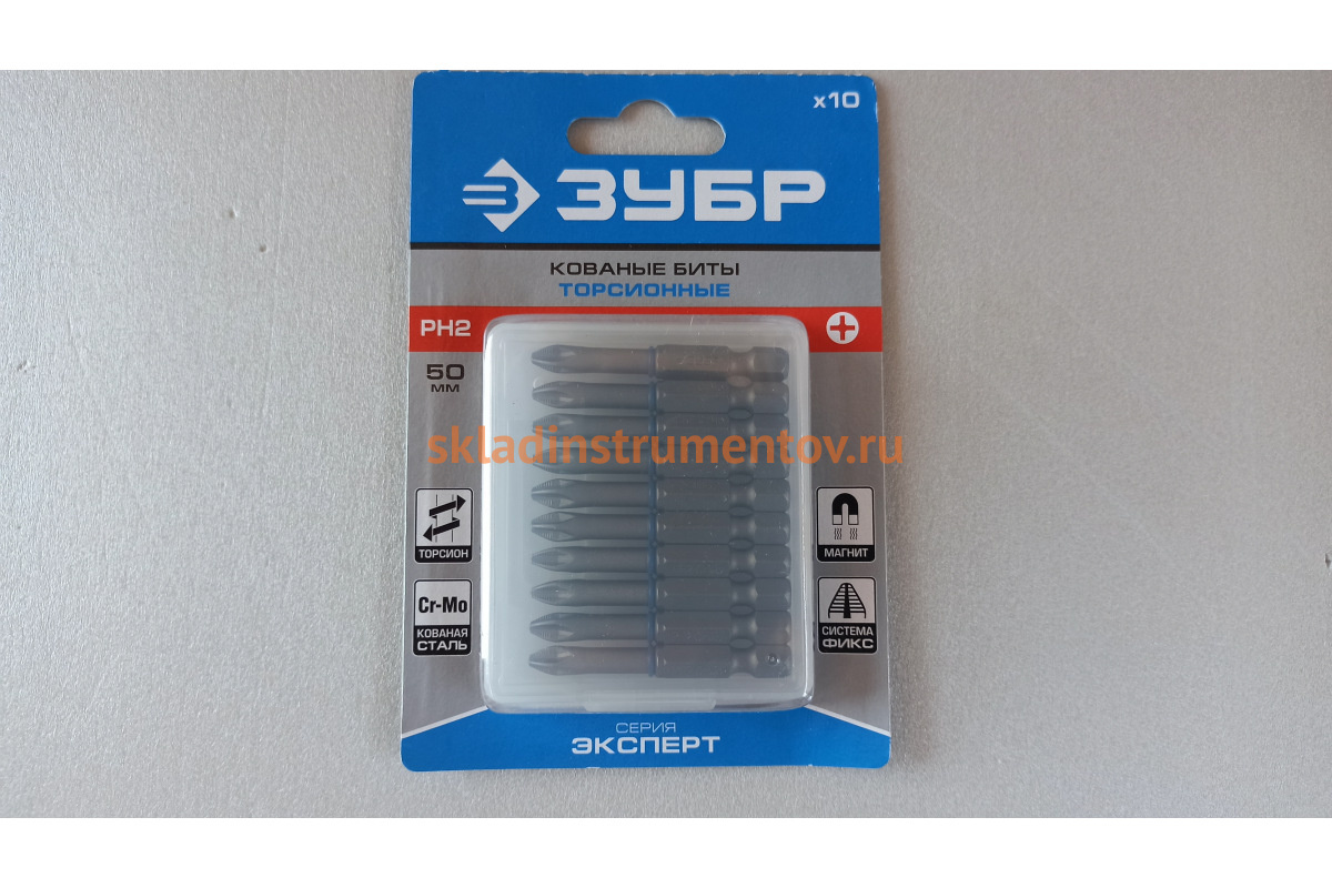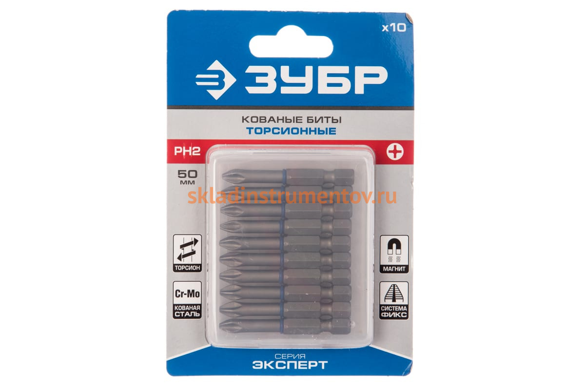 Биты "ЭКСПЕРТ" Зубр 26011-2-50-10 являются расходным инструментом для шуруповертов при монтаже/демонтаже крепежа со шлицем PH2. Наличие торсионной зоны предохраняет наконечник от разрушения при предельных нагрузках. Система насечек "ФИКС" исключает риск выскальзывания шлица из крепежа. Обточенная часть способствует удобной работе в труднодоступных местах. Биты изготовлены из кованой хромомолибденовой стали, что обеспечивает им продолжительный срок службы. Также стоит отметить, что шлиц намагничен, что делает рабочий процесс комфортнее. Длина бит составляет 50 мм, тип хвостовика - Е 1/4".