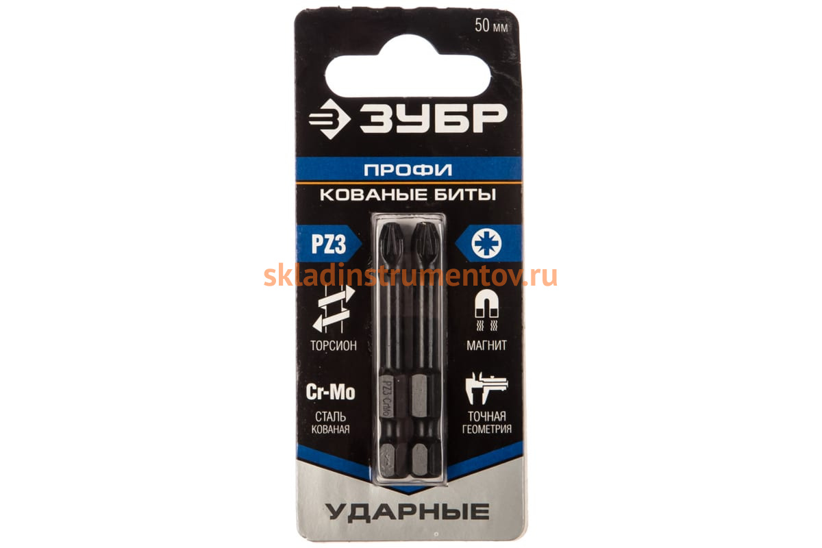 Биты ПРОФИ PZ3 (2 шт; 50 мм) Зубр 26023-3-50-S2 изготовлены из кованой хромомолибденовой стали. Используются с шуруповертами при монтаже и демонтаже крепежа. Обеспечивают долгий срок службы и повышенную прочность. Шлиц данных бит намагничен, что повышает удобство при работе. Наличие торсионной зоны предохраняет наконечник от разрушения при предельных нагрузках. Точная геометрия шлица гарантирует надежный контакт. Хвостовик - E 1/4".