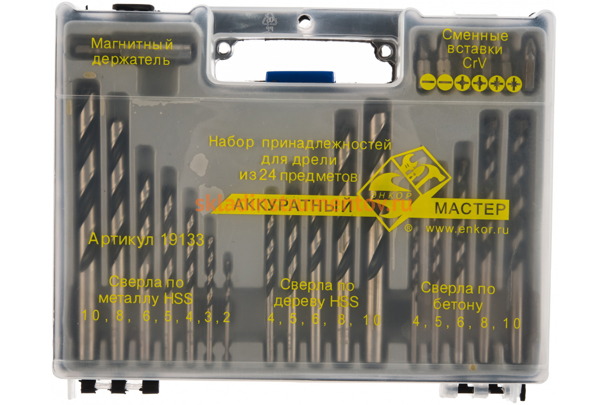 В набор сверл и бит Энкор 19133 входят: