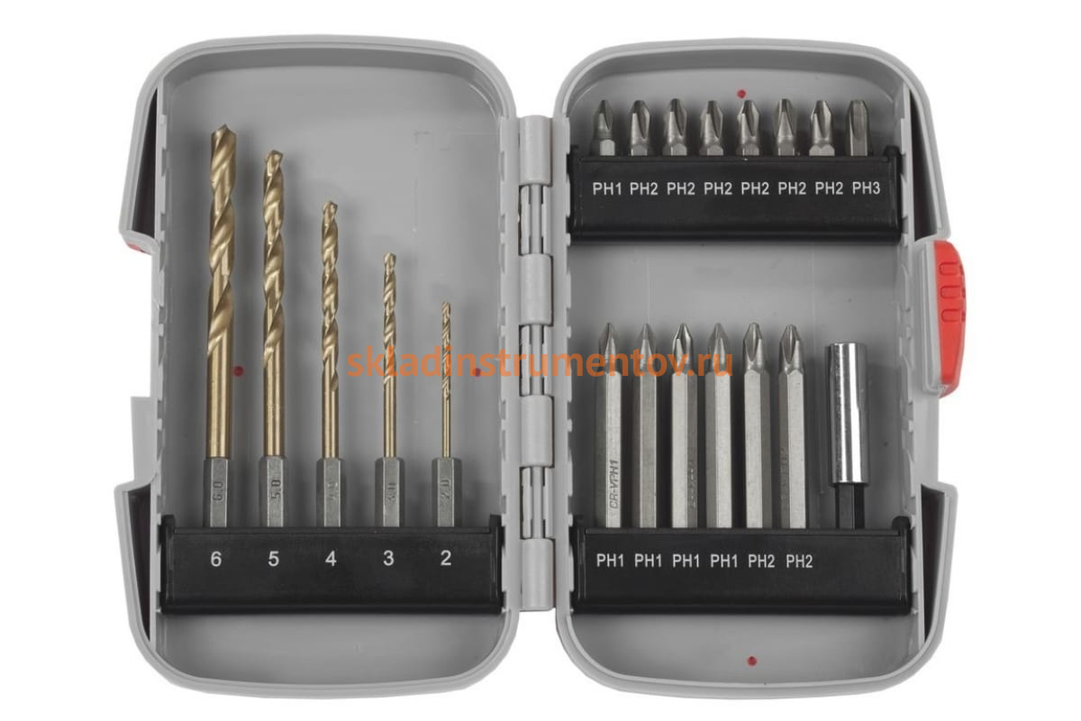 Набор насадок Зубр 26056-H20 используется совместно с шуроповертами и дрелями. Оснастка предназначена для выполнения различных задач. Сверла изготовлены из быстрорежущей стали, очень прочные и долговечные. Биты имеют шестигранный хвостовик и произведены из хромованадиевой стали высокого качества, а их поверхность обладает специальным защитным покрытием. Все это обеспечивает долгий срок службы оснастки, ее высокую прочность и защиту от химических воздействий. Торсионная зона бит предохраняет наконечник от разрушений при пиковых нагрузках, а специальная система насечек предотвращает выскальзывание шлица из крепежа. Намагниченный шлиц повышает удобство работы.